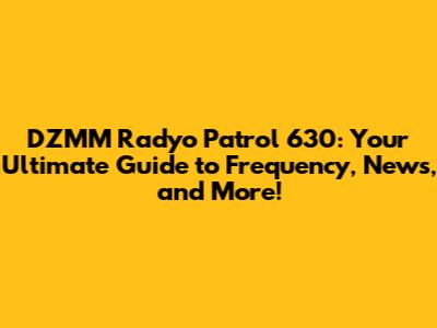 Hey everyone! Ever wondered about DZMM Radyo Patrol 630? This isn't just any radio station, guys; it's a lifeline for many Filipinos. It's where you go to get the latest news, hear stories that matter, and stay connected to what's happening in the Philippines and beyond. But, where do you even find this powerhouse of information? That, my friends, is what we're diving into today! We're talking about the DZMM Radyo Patrol 630 frequency, what makes this station tick, and why it's such an important part of the media landscape. Get ready to tune in – literally and figuratively – as we explore everything you need to know about DZMM Radyo Patrol 630.